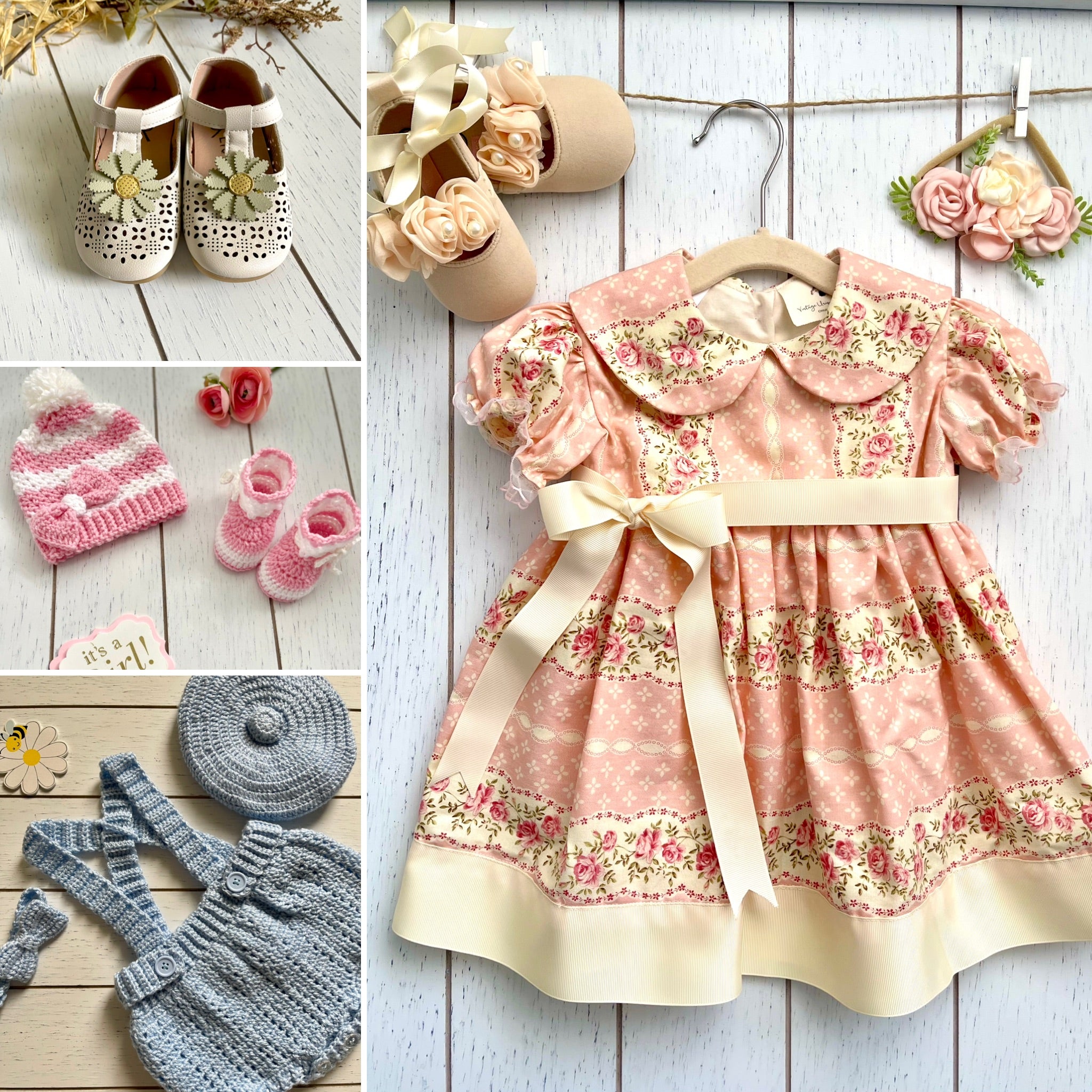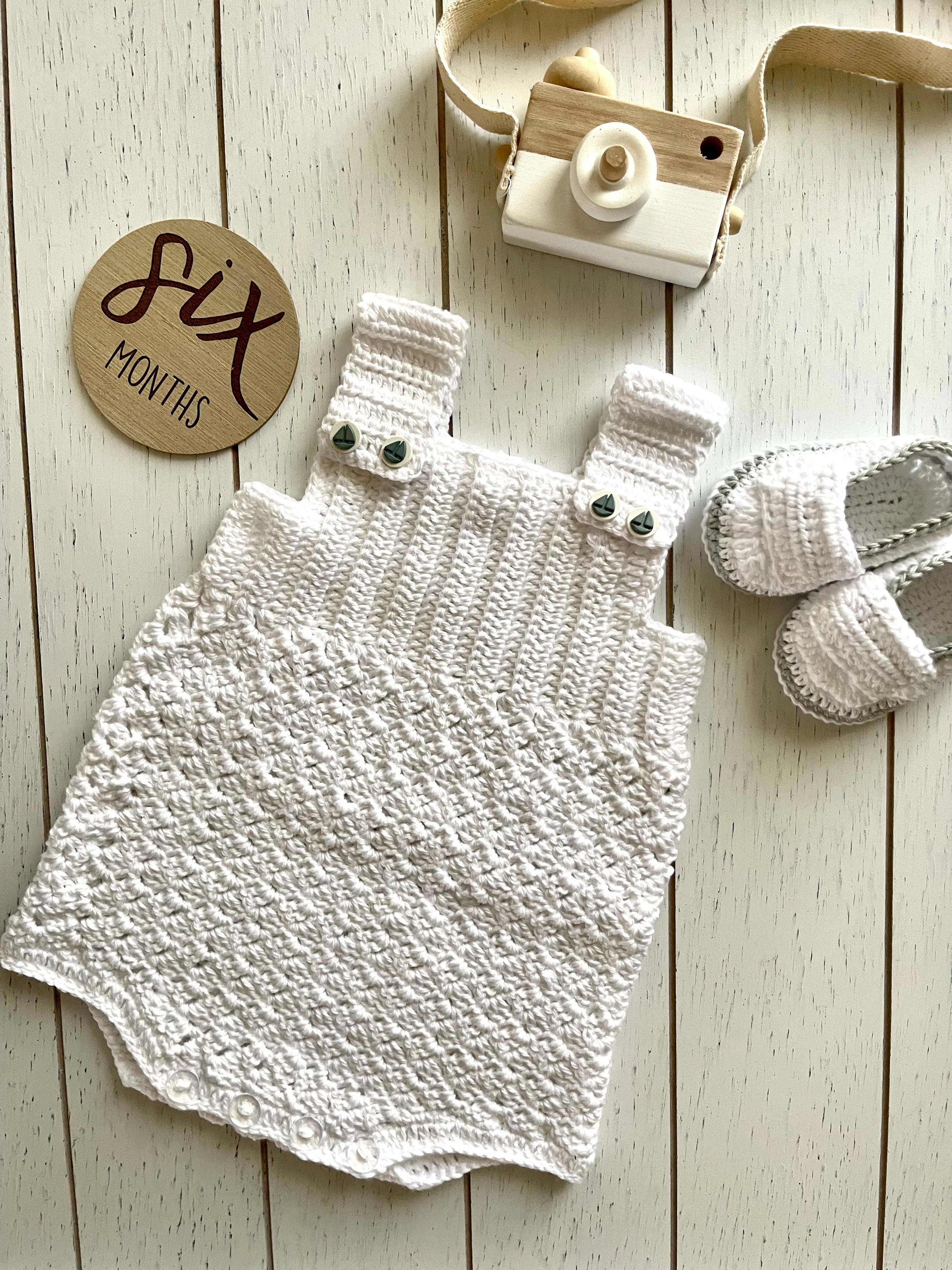 Beautiful rompers and overalls sewn or crocheted specially designed for your baby.