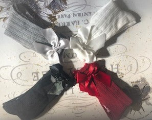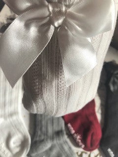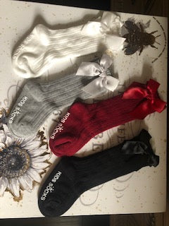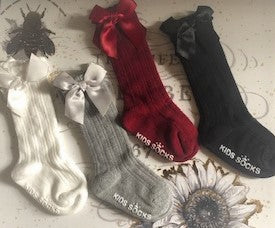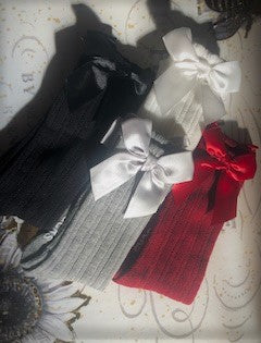 Soft cotton knee high with bow girl socks. Comes in Black, pink, white, red and gray color. Also different sizes available.