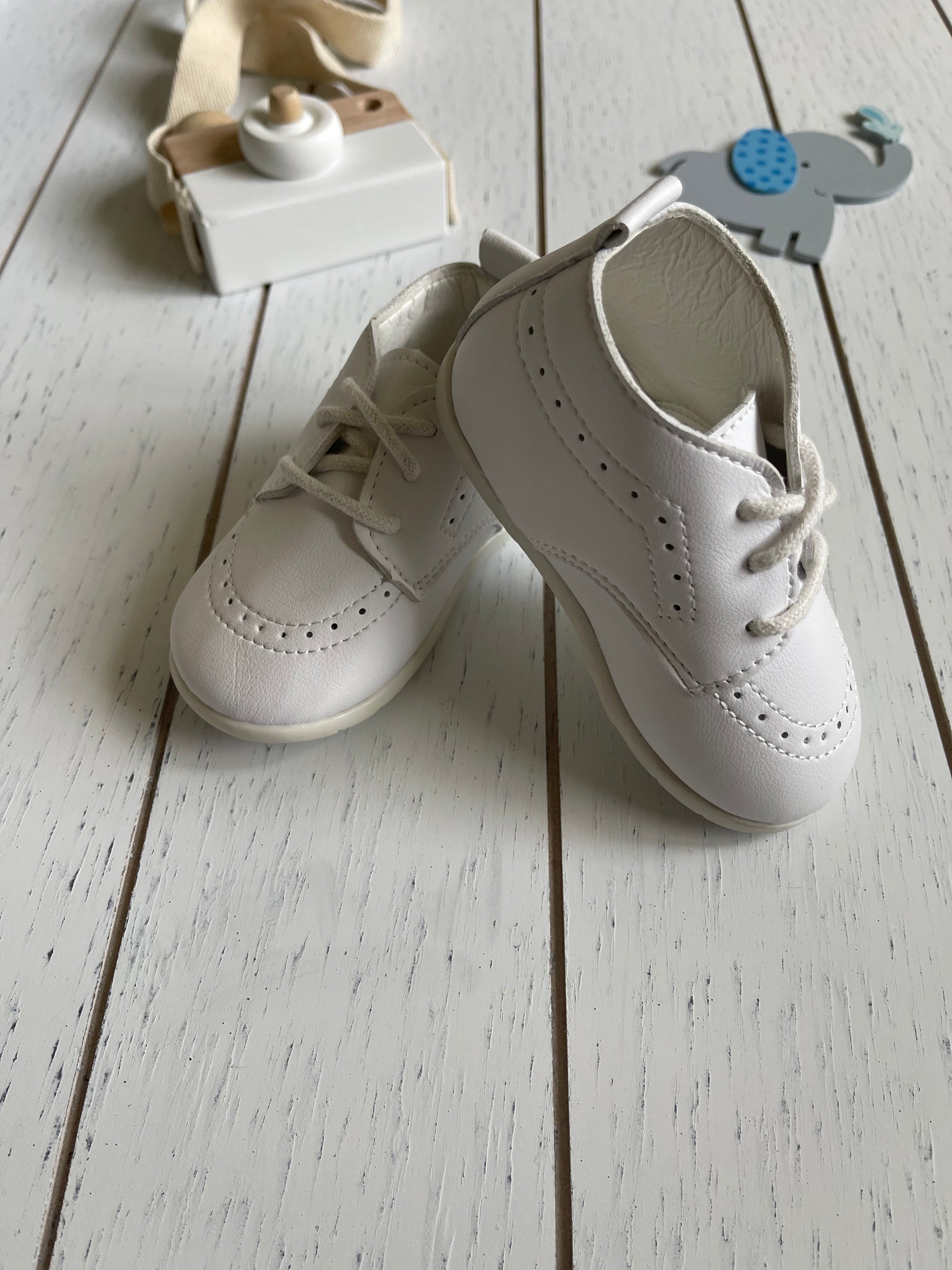 High tops PU leather boy or girl shoes. Soft, firm for ankle and nonslip baby shoes. Shoelaces to secure first walkers. Available in different sizes.